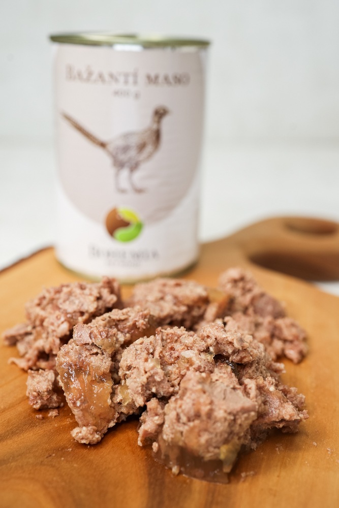 Dåsen opfylder standarden kaldet "dobbelt protein", hvilket betyder, at den indeholder 2 typer protein - fasan- og kalkunkød. Resten af ingredienserne er kun grøntsagsbouillon og koldpresset hørfrøolie.