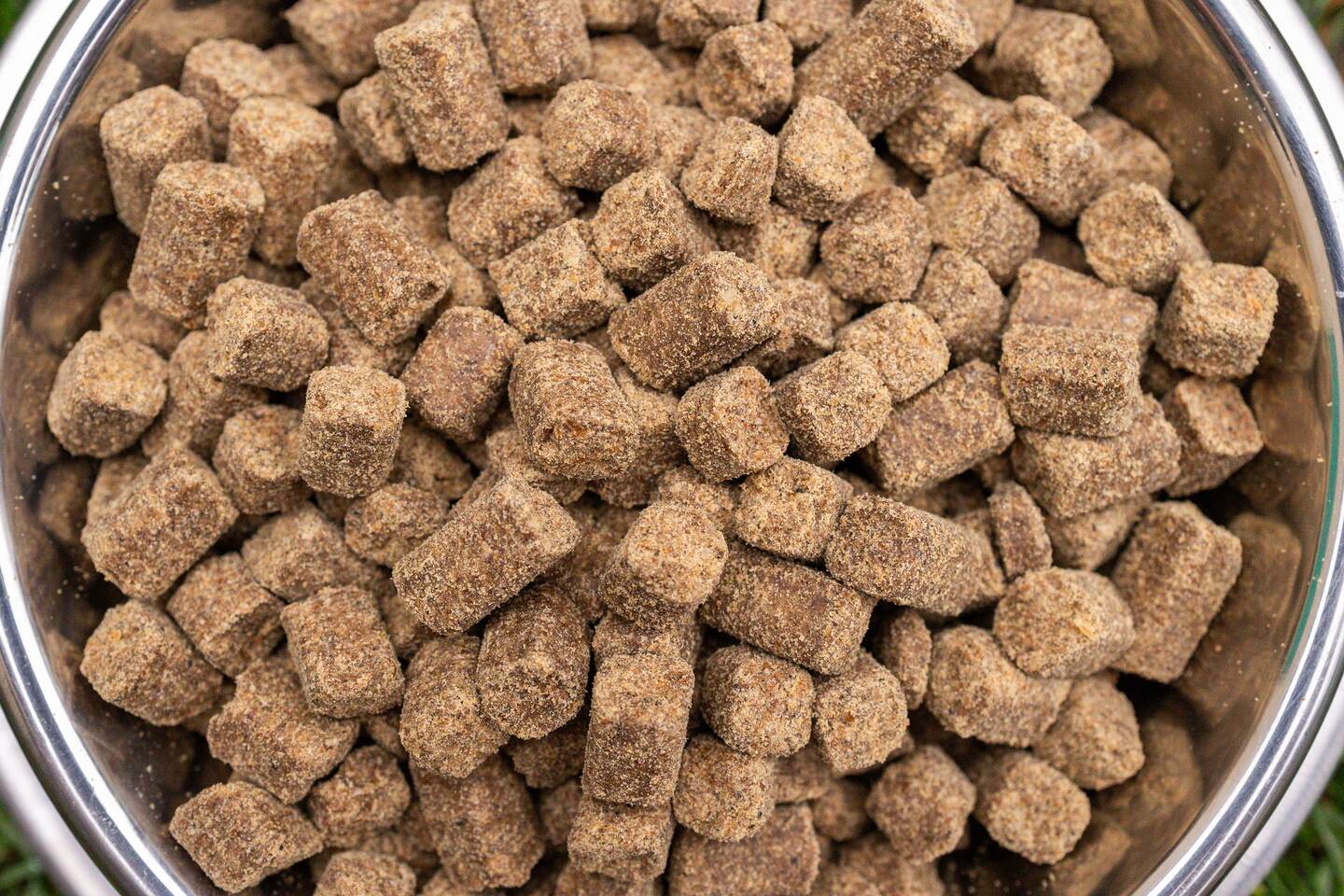 SAMMENSÆTNING: tørret bisonkød (25%), tørret oksekød (8%), tørrede søde kartofler, tørrede kartofler, oksefedt (13%), havregryn (8%), frisk lammelever (5%), tørret græskar (2%), tørret lammelever (2%), majsflager, tørrede gulerødder (1,2%), hørfrø, cikorieekstrakt, tørrede urter, beta-glucaner, bruskekstrakt, vitamin-mineralblanding.