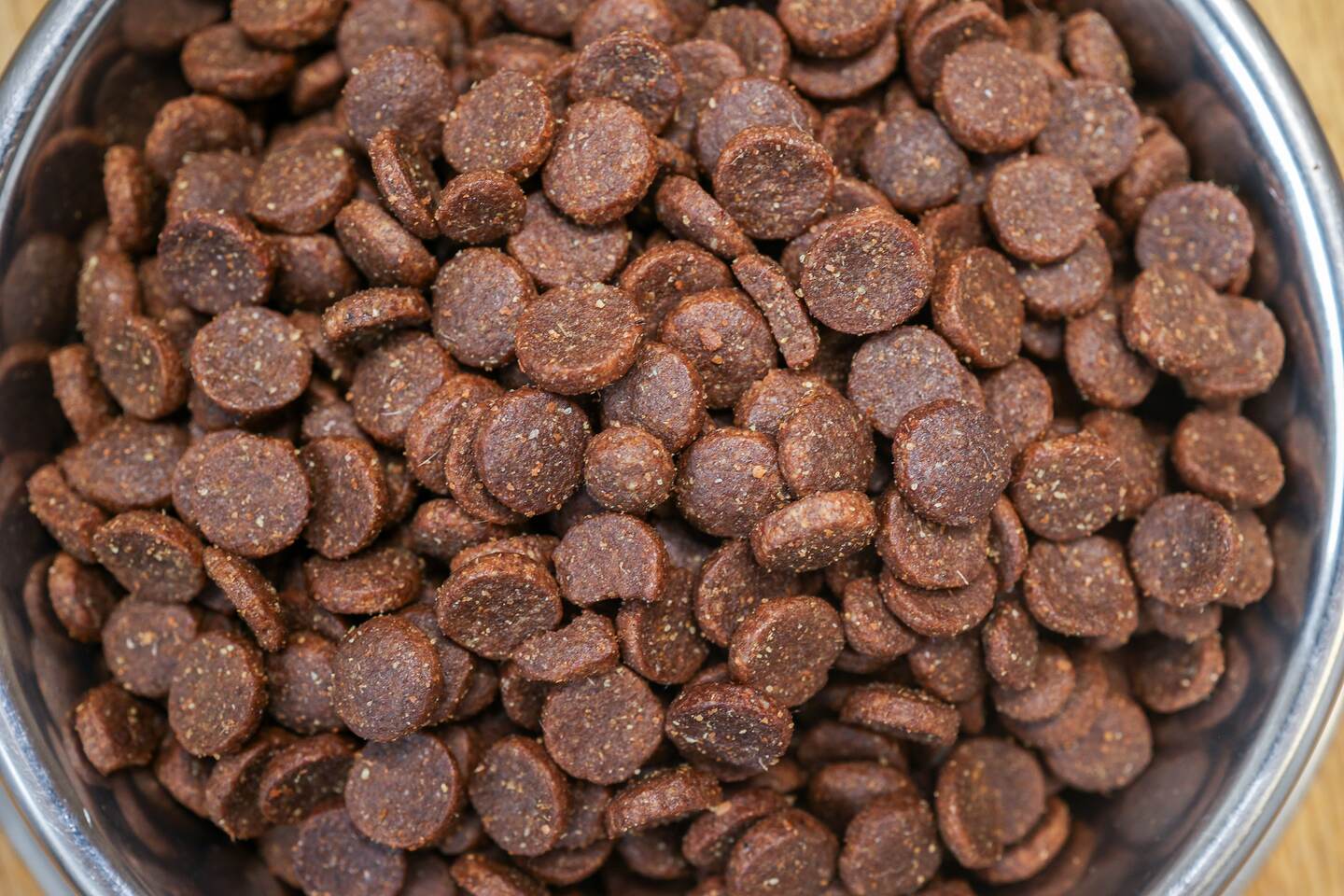 Server foderet tørt eller med vand. Giv din hund den daglige ration i forhold til hundens vægt. Den anbefalede daglige ration er kun vejledende. Mængden af dagligt foder afhænger af hundens foderstand og alder. Hvis hunden er overvægtig, ældre eller inaktiv, skal den daglige portion reduceres med op til 10%. Hvis hunden er undervægtig, meget aktiv eller unghund, skal den daglige portion øges med 10%. Hundens foderstand skal vurderes ofte og fodermænden justeres herefter. Rent, frisk vand skal altid være tilgængeligt. Foderet skal opbevares tørt.